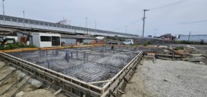 老人ホーム『シエスタ石津』の基礎工事が順調に進んでいます。鉄筋の設置作業が始まり、建物の強度を高めるための重要なステップとなっています。